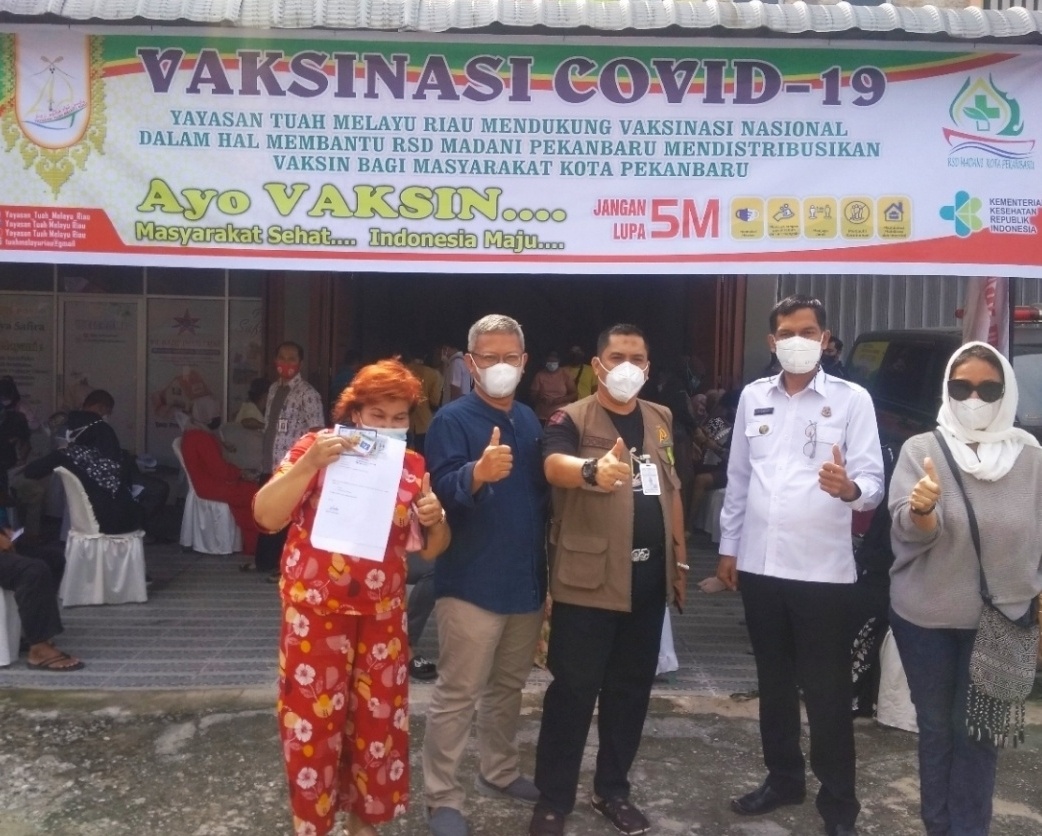 Sejauh ini, pihak Yayasan Tuah Melayu Riau bukan saja melaksanakan vaksinasi, tetapi kita juga telah menjalankan beberapa program sosial yakni memberikan ribuan paket sembako dan 5.000 (Lima Ribu) masker untuk masyarakat Riau khususnya di kota Pekanbaru,” ujar Donny S Putra
