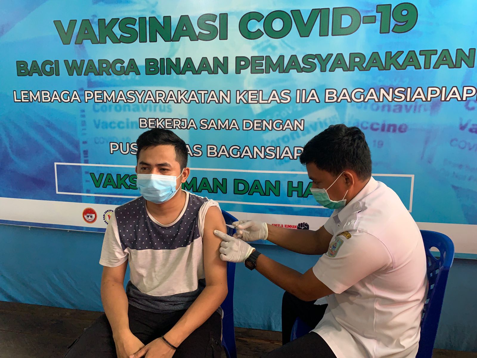 Vaksin Tahap I sebanyak 6 orang, Vaksin Tahap II ada 4 orang dan Vaksin Tahap lll ada 24 kata Kepala Lapas kelas IIA Bagansiapiapi”Wachid Wibowo.