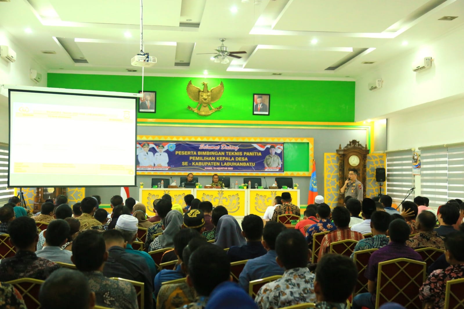 LABUHANBATU (LABUHANBATU )-Asisten I Pemerintahan Setdakab Labuhanbatu Drs. Sarimpunan Ritonga, M.Pd., membuka Bimbingan Teknis Panitia Pemilihan Kepala Desa Se-Kabupaten Labuhanbatu 2022 yang diselenggarakan oleh Dinas Pemberdayaan Masyarakat Desa Kabupaten Labuhanbatu di Ruang Data dan Karya Kantor Bupati, Kamis (18/08/2022).