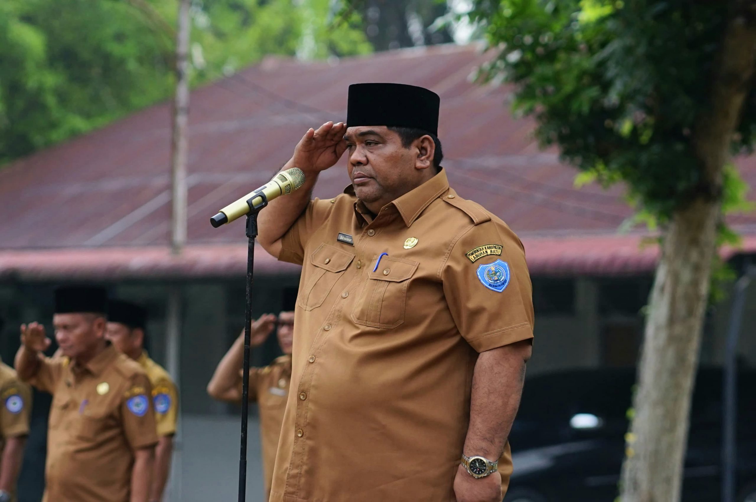 Labuhanbatu, Haluanpos.com- Asisten III Administrasi Umum Pemerintah Kabupaten Labuhanbatu Zaid Harahap, S.Sos., MM., memimpin Apel Gabungan Kelompok I Pegawai di Lingkungan Pemerintah Kabupaten Labuhanbatu di lapangan kantor Badan Kepegawaian Pendidikan dan Pelatihan Kabupaten Labuhanbatu, Rantau Selatan, Senin (11/12/2023).
