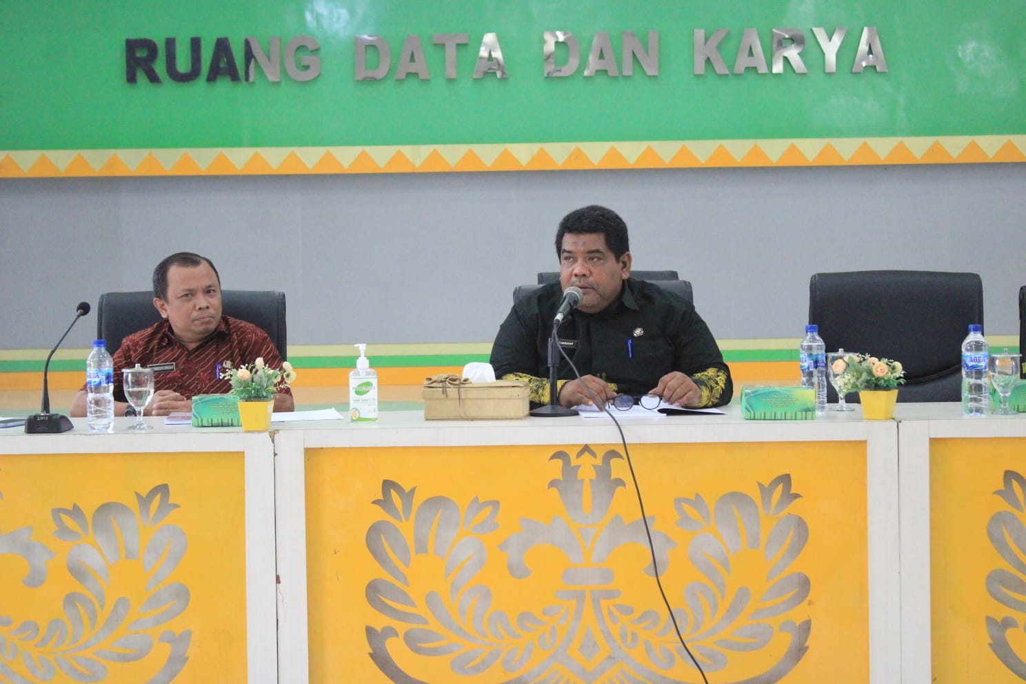 Acara dilanjutkan dengan pemaparan materi peraturan bupati oleh Kabag organisasi Hamamudin Siregar.