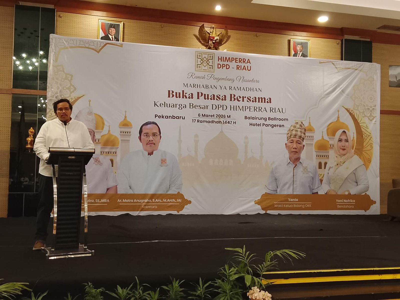 Ketua DPD HIMPERRA Riau DR (HC ) Donny Satria Putra SE, MBA yang diwakili oleh sekretaris Ar, Matra Anugraha, S.Ars, M,Arch, IAI menjelaskan, Acara ini dalam rangka mempererat silaturahmi DPD HIMPERRA Riau dengan stakeholder serta berbagai mitra kerja DPD HIMPERRA Riau. Kami juga mengucapkan terimakasih kepada para undangan yang telah hadir diacara buka puasa bersama dengan pengurus DPD HIMPERRA Riau,” ungkap Matra