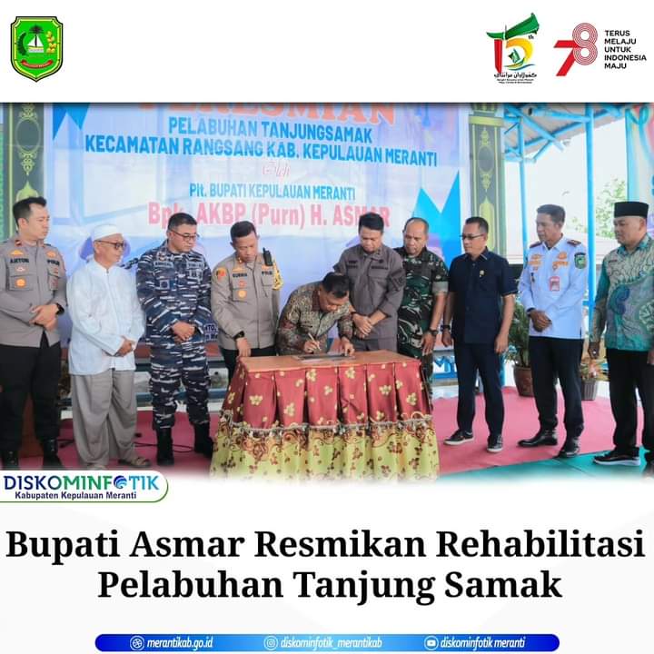 MERANTI (HALUANPOS.COM)- Pelaksana tugas (Plt) Bupati Kepulauan Meranti AKBP (Purn) H. Asmar meresmikan Rehabilitasi Pelabuhan Sandar Kapal Feri Tanjung Samak Kecamatan Rangsang, Kamis (18/1/2024).