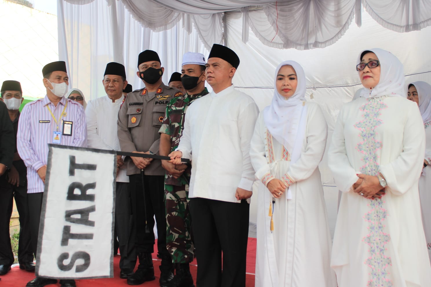 LABUHANBATU (HALUANPOS.COM)-Bupati Labuhanbatu dr. H.Erik Adtrada Ritonga, MKM, dan Wakil Bupati Labuhanbatu Hj.Ellya Rosa Siregar S.Pd, MM, bersama pimpinan Forkopimda Labuhanbatu melepas keberangkatan 216 orang Calon Jamaah Haji Indonesia asal Labuhanbatu di Halaman Asrama Haji Rantauprapat, Kelurahan Ujung Bandar, Kecamatan Rantau Selatan, Selasa (14/06/2022).