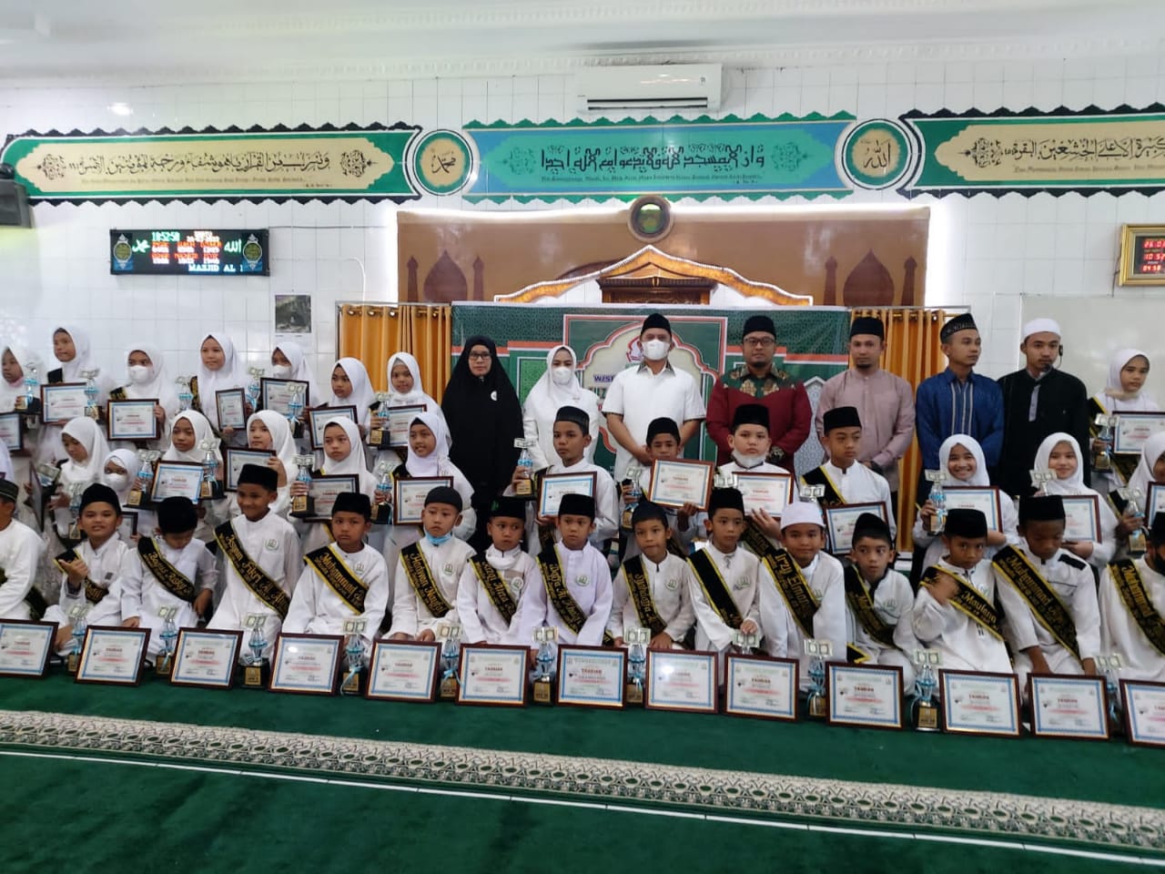 Dalam rangkaian acara tersebut, Bupati Labuhanbatu di dampingi oleh Ketua TP.PKK menyerahkan piagam penghargaan dan menyematkan selempang tanda wisuda kepada para penghafal Al-Qur’an yang mengikuti wisuda hari ini. (Hms)