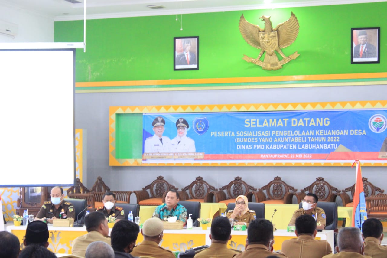 Hal itu disampaikan Bupati Labuhanbatu dr. H. Erik Adtrada Ritonga, MKM didampingi Wakil Bupati Labuhanbatu Hj. Elya Rosa Siregar, S.Pd. MM. Ketika membuka sosialisasi pengelolaan keuangan desa (BumDes Yang Akuntabel) Tahun 2022, di Ruang Data dan Karya Kantor Bupati Labuhanbatu. Senin (23/05/2022).