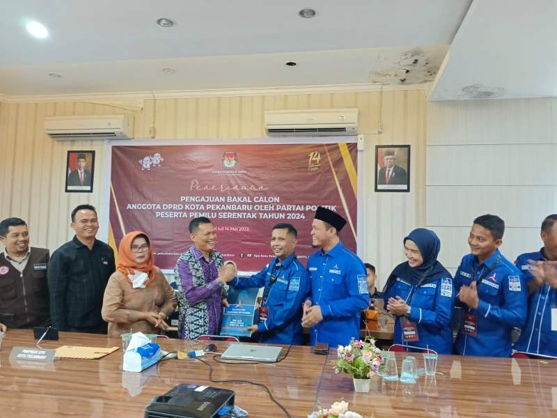 Ketua DPC Partai Demokrat Pekanbaru Tengku Azwendi Fajri usai menyerahkan berkas Bacaleg menjelaskan, pendaftaran bacaleg Partai Demokrat Pekanbaru telah dilakukan pada tanggal 13 Mei 2023 tepat pada pukul 14.00 WIB. Dimana, ada sebanyak 50 bacaleg Partai Demokrat Pekanbaru yang didaftarkan ke KPU Pekanbaru.