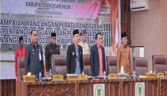 ROKAN HILIR (HALUANPOS.COM) Dewan Perwakilan Rakyat Daerah Kabupaten Rokan Hilir (Rohil) Menggelar Paripurna Penyampaian Rancangan Peraturan Daerah Pertanggungjawaban APBD Tahun Anggaran 2023.Yang disampaikan oleh Bupati Rokan Hilir Afrizal Sintong.