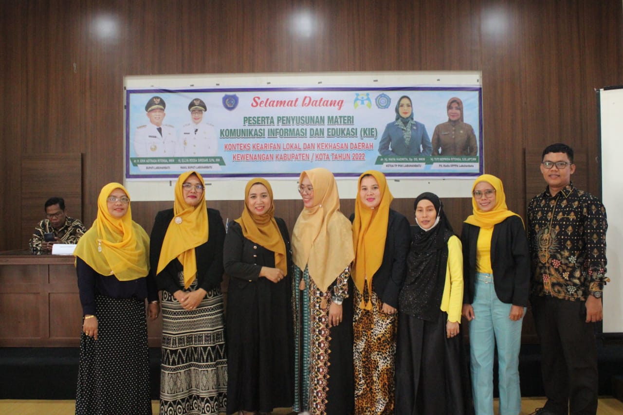 LABUHANBATU (HALUANPOS.COM)-Dinas Pemberdayaan Perempuan dan Perlindungan Anak (DPPPA) Kabupaten Labuhanbatu bekerjasama dengan Sahabat Bunda Maya Kegiatan Penyusunan Materi Komunikasi Informasi dan Edukasi (KIE) Konteks Kearifan Lokal dak Kekhasan Daerah Kabupaten Labuhanbatu yang dibuka secara resmi oleh Ketua Tim Penggerak PKK Labuhanbatu dr. Hj. Maya Hasmita, Sp. OG., MKM di Aula PKK Labuhanbatu, Rantau Utara, Kamis (23/06/2022).