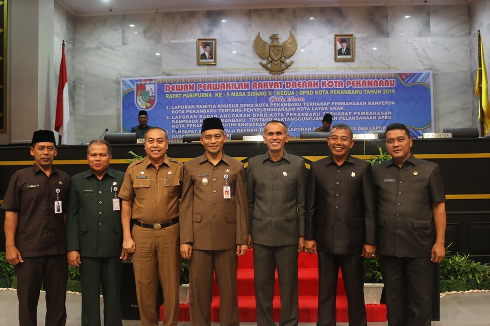 PEKANBARU – DPRD Pekanbaru, akhirnya mengesahkan Peraturan Daerah (Perda) Kota Layak Anak (KLA).Pengesahan dilakukan dalam rapat paripurna DPRD Pekanbaru, Senin (22/7/2019). Rapat peripurna dipimpin Wakil Ketua DPRD Nofrizal dihadiri Wakil Walikota Pekanbaru, sejumlah pejabat Pemko dan 32 anggota DPRD Pekanbaru serta para undangan.