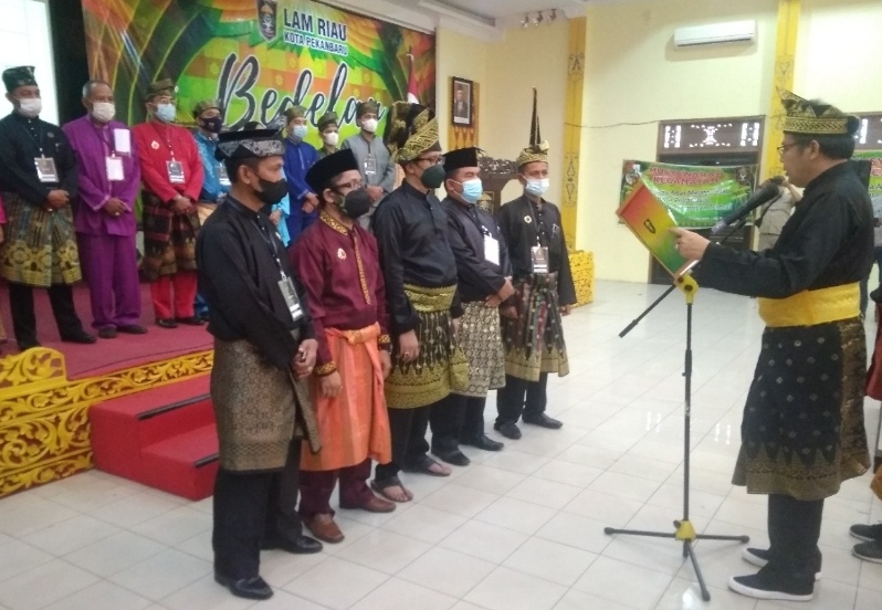 Pekanbaru(Haluanpos-com)- Secara resmi, ketua Umum DPH LAMR Datuk Seri Syahril Abubakar mengambil sumpah dan janji serta melantik Dr Rizaldi Putra sebagai Ketua Umum DPH LAM Riau kota Pekanbaru dan Dr M Syahrullah Umar sebagai Ketua MKA LAMR Kota Pekanbaru Periode 2021-2025 serta beberapa pengurus lainnya.