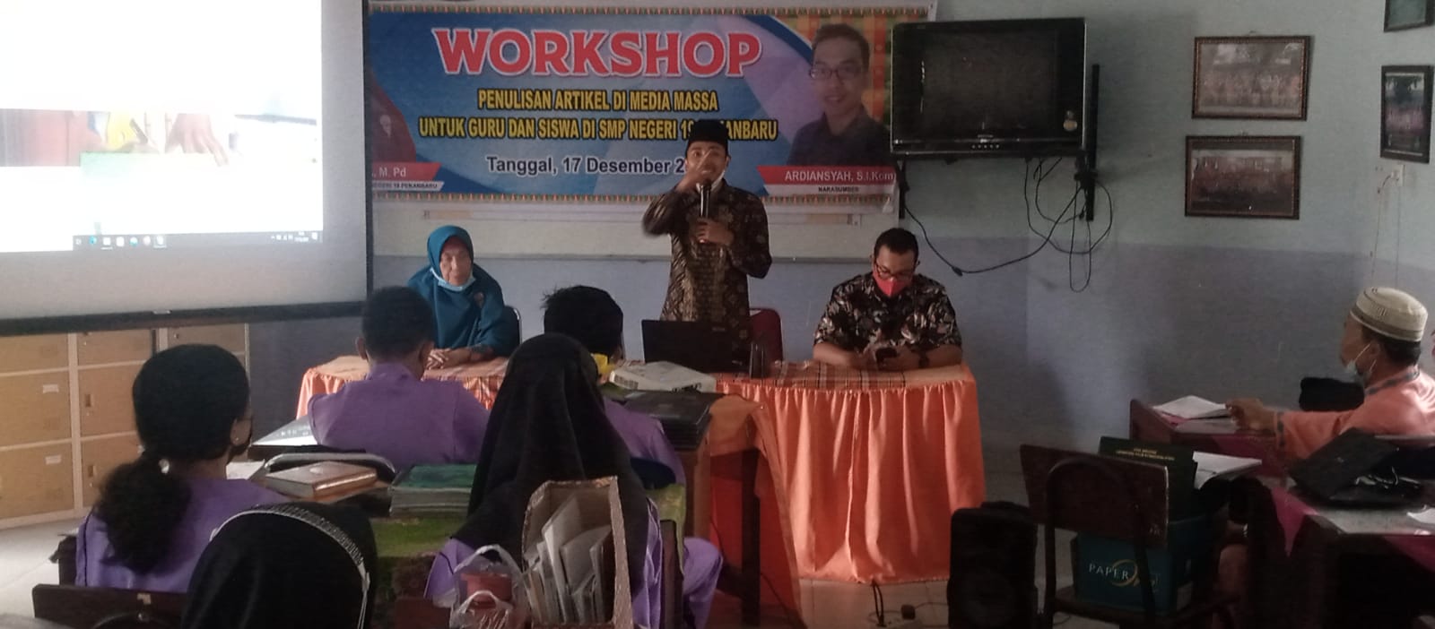 Untuk meningkatkan kreativitas menulis di kalangan Guru dan Siswa di SMP Negeri 19 Kota Pekanbaru menggandeng wartawan menggelar workshop penulisan artikel di media massa di ruang majelis guru SMP
