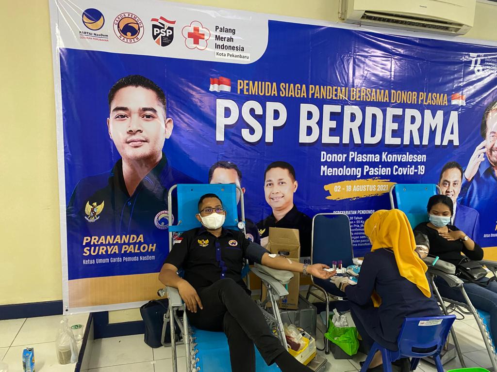 Pekanbaru (Haluanpos-com) – Untuk membantu masyarakat di tengah pandemi Covid-19, Garda Pemuda NasDem Riau melakukan gerakan donor darah bertepatan dengan HUT Republik Indonesia Ke-7, di Kantor DPW NasDem Riau. Selasa (17/8/2021) kemarin.