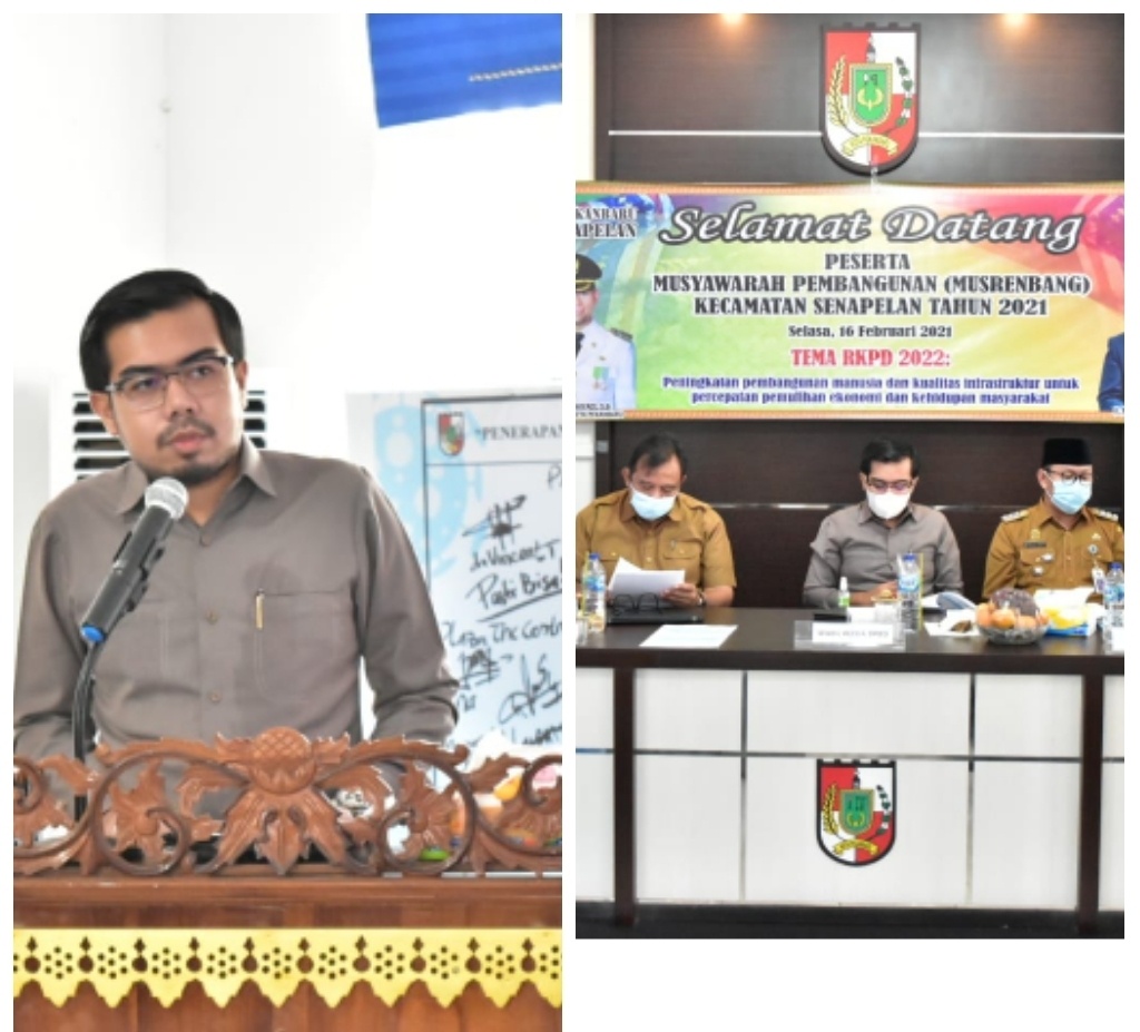 Pekanbaru(Haluanpos com)-Kegiatan Musyawarah Pembangunan (Musrembang) di kecamatan Senapelan tempatnya diaula kantor camat Senapelan Jalan Panglima Undan kota Pekanbaru, Selasa,(16/2/2021) dihadiri langsung oleh Wakil ketua DPRD kota Pekanbaru Ginda Burnama, Jepta Sitohang dan beberapa anggota DPRD Dapil Senepelan dan Payung Sekaki lainnya. Selain itu, juga hadir camat Senapelan, Kapolsek, tokoh masyarakat, RT dan RW, ketua LPM kecamatan hingga Kelurahan.