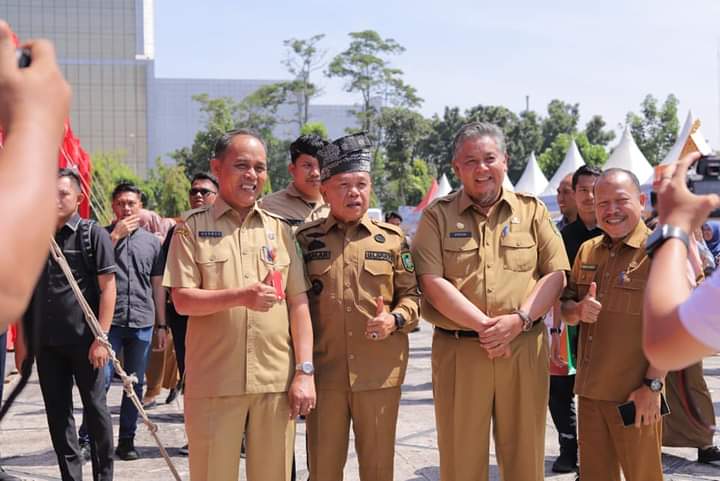 Turut hadir unsur Forkopimda Riau, bupati dan walikota se-Provinsi Riau, serta pejabat dan tamu undangan lainnya.