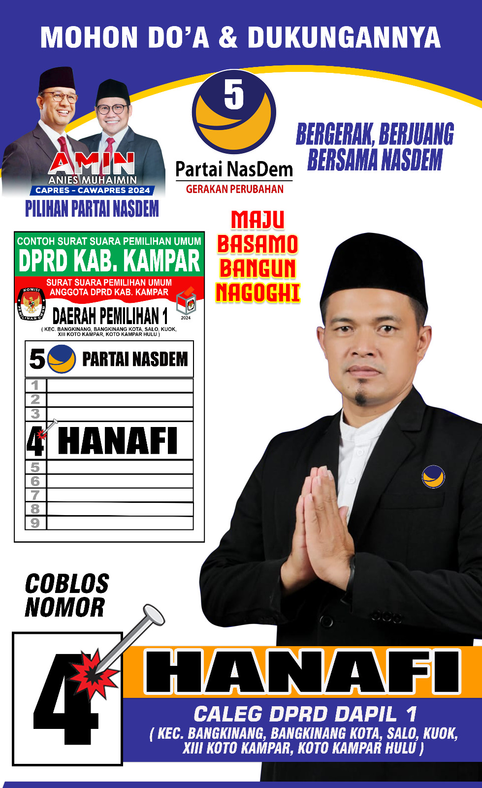 Hanafi yang juga sebagai Aktifis LSM di Kampar itu siap amanah dalam menampung aspirasi serta memberikan ruang atau akses kepada generasi penerus bangsa utamanya generasi pemuda & pemudi untuk bersama-sama menciptakan( SDM) sumber daya manusia yang tangguh, berdaya saing, berkarakter sesuai dengan potensi bidangnya masing-masing.
