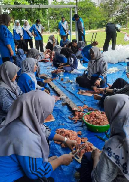 Daging kurban kemudian dibagikan kepada yang berhak menerima, termasuk guru honorer, petugas kebersihan, siswa kurang mampu secara ekonomi, dan masyarakat sekitar sekolah. Kegiatan ini tidak hanya menjadi momentum berbagi, tetapi juga sarana untuk mempererat tali silaturahmi antara seluruh elemen sekolah dan masyarakat.
