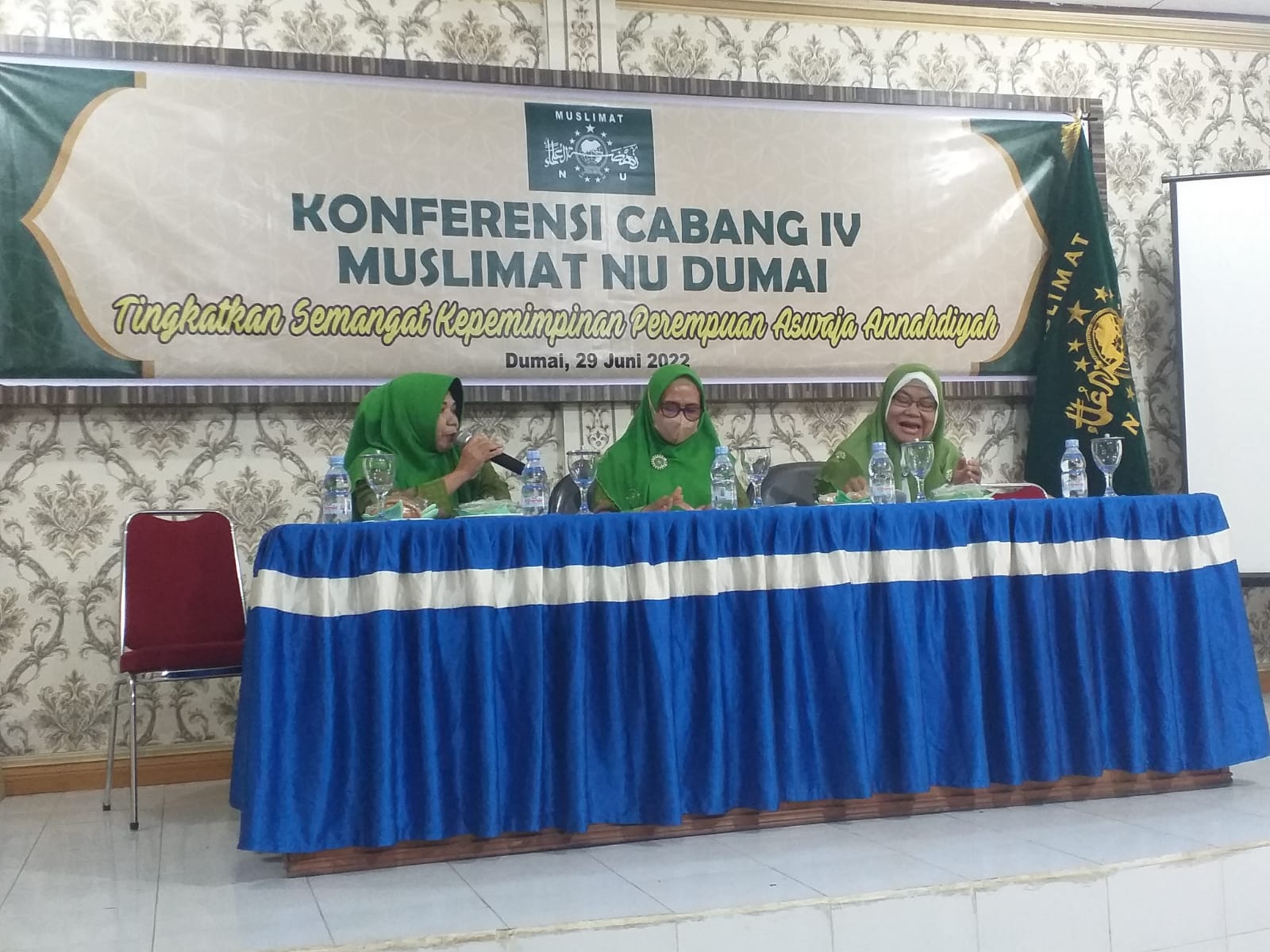 ” ya Alhamdulillah telah terlakana konferensi Cabang IV Muslimat NU Dumai pada hari Rau, 29 Juni 2022 di Aula Kemenang Dumai.dalam konfercab ini Mendapatkan masukan dari peserta konfercab dari 7 PAC disetiap kecamatan se Kota Dumai. dan harapan yang ingin dicapai kedepannya agar MNU lebih dapat dirasakan Masyarakat keberadaannya terutama dalam mengembangkan amaliah aswaja Annahdiyah seperti kegiatan wirid yasin, menghidupkan kelompok sholawatan dan zikir dengan melestarikan seni budaya setempat, berzanji, Istigosah, mahalul qiyam yang selalu dikenal dimasyarakat melayu seni marhaban, perayaan hari-hari besar Islam ( Maulid nabi, Israk mi’roj, 1 dan 10 Muharrom, mendoa dihari baik bulan baik ) pengajian Aswaja Muslimat NU lainnya.” kata Ketua Muslimat NU Riau Hj. Dinawati.