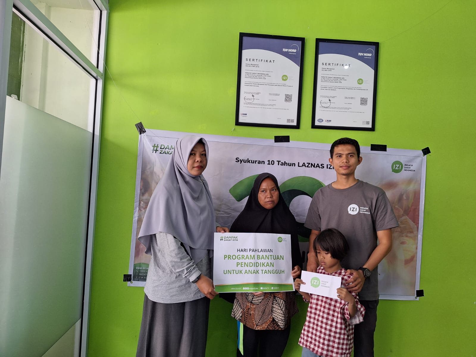Dalam momen hari pahlawan dan milad IZI, IZI perwakilan Riau juga menyalurkan bantuan pendidikan kepada penerima manfaat, Ibu Sabariah salah satu penerima manfaat mengucap syukur dan terimakasih. “Alhamdulillah, terimakasih yaa Allah, terimakasih IZI, terimakasih donatur, semoga Allah limpahkan rezeki dan keberkahan kepada semuanya, dengan bertambahnya umur IZI, semoga semakin luas menebar manfaat kepada seluruh masyarakat yang ada di Indonesia, sekali lagi terimakasih telah membantu saya untuk melunaskan utang sekolah anak saya.” Ucap Sabariah yang terharu