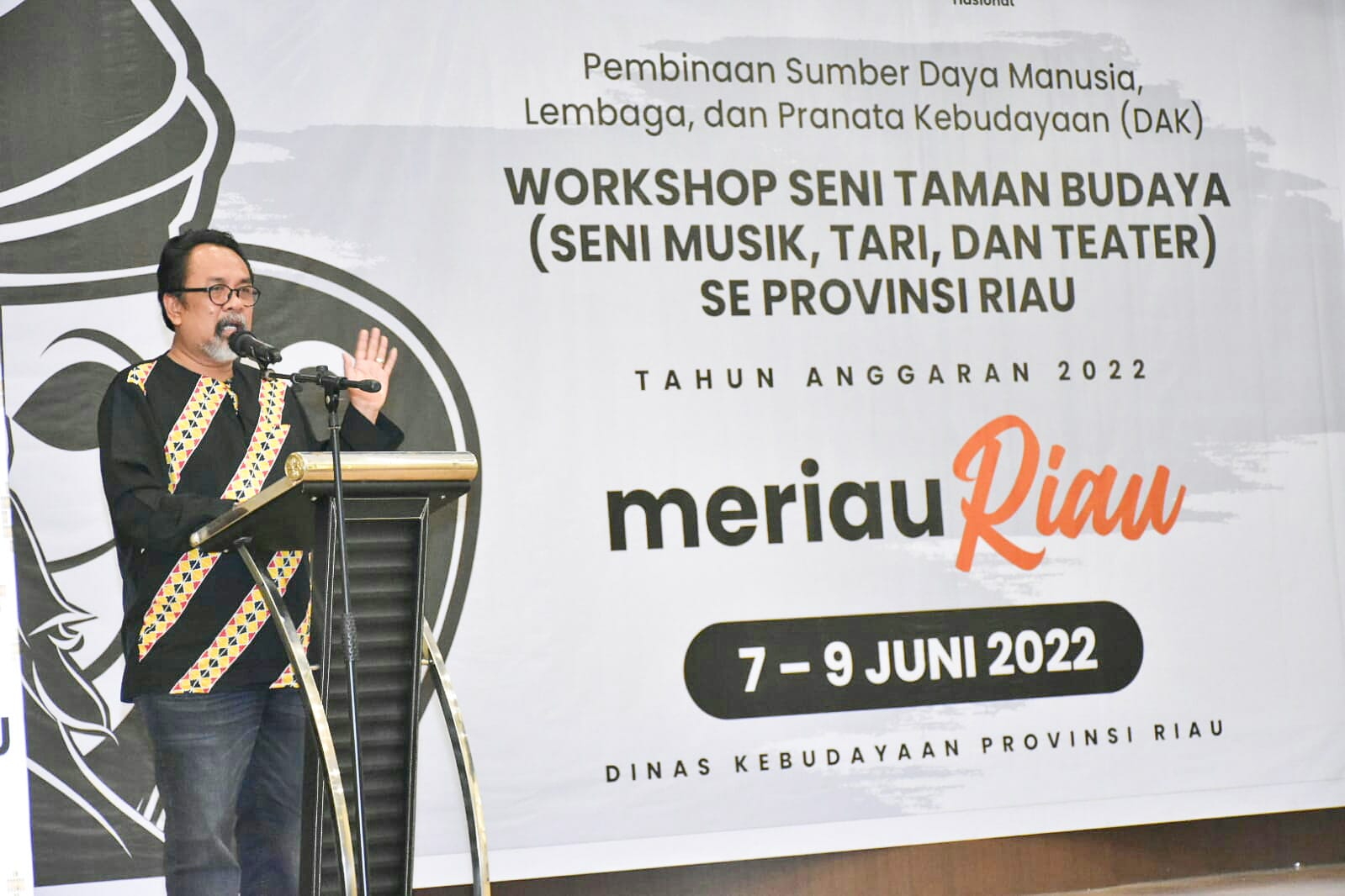 Pekanbaru (Haluanpos.cim)-Kegiatan tahunan Dinas Kebudayaan Provinsi Riau, yakni Workshop Seni Taman Budaya se-Provinsi Riau Tahun 2022 resmi dibuka oleh Kepala Dinas Kebudayaan Provinsi Riau, Raja Yoserizal Zen di Hotel Alpha Pekanbaru, Selasa (7/6/2022) malam.