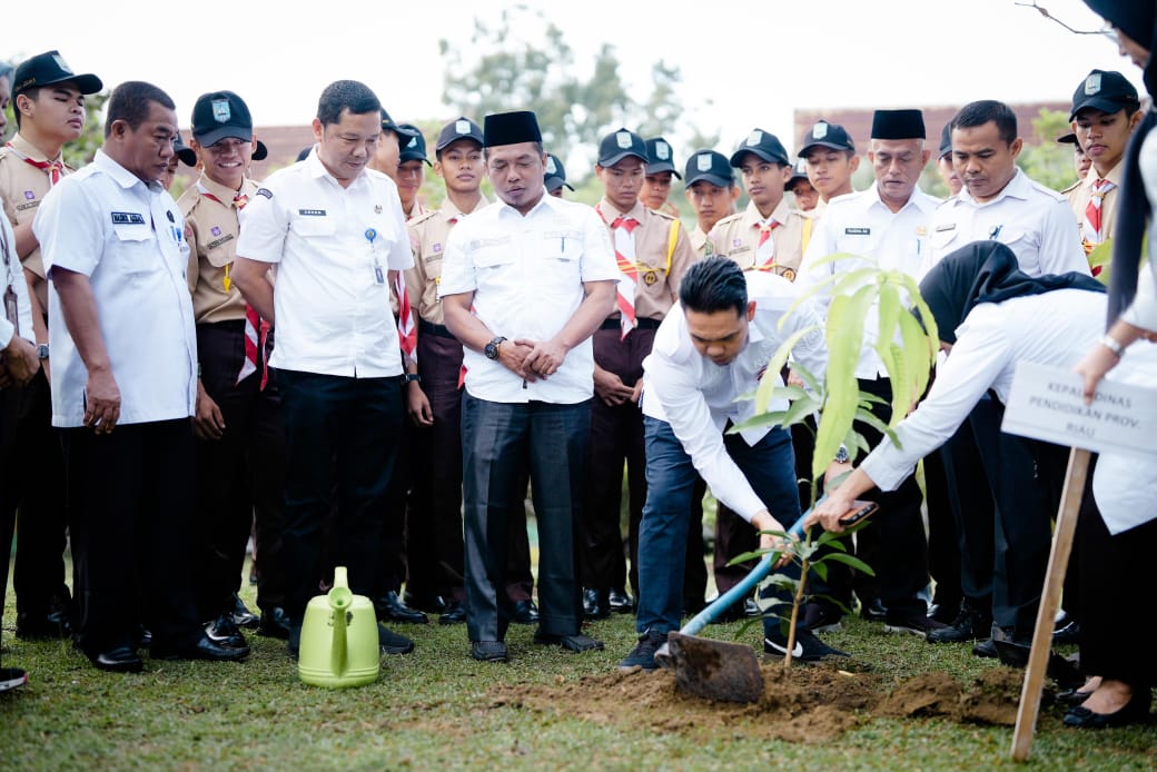 Kampar (haluanpos.com)- Kepala dinas Pendidikan Riau H. Erisman yahya didampingi Sekretaris dinas Arden Simeru dan Kabid SMA Nasrol Akmal melakukan penanaman Pohon di lingkungan SMA Plus Riau , penanaman Pohon ini sesuai dari Apel Pagi bersama.