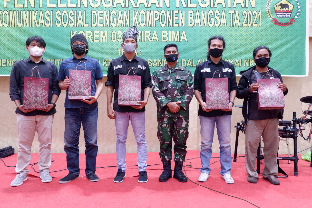 Diakhir Kegiatan Kasiter Korem 031/Wirabima Kolonel. Kav Jonny Harianto Gulo, S.I.P memberikan bingkisan kepada Kampung Musisi sebagai bentuk apresiasi.