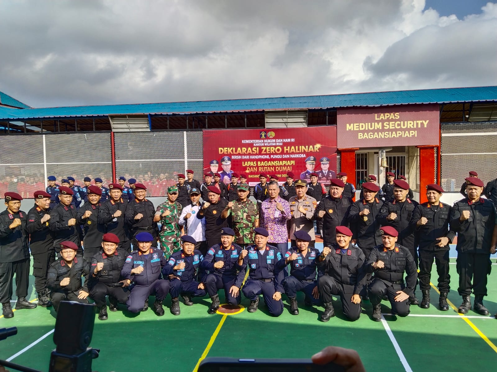 BAGANSIAPIAPI (Haluanpos com) Kanwil Kemenkumham Riau gelar deklarasi bersih dari handphone, pungli dan narkoba (zero Halinar) bagi Lapas Bagansiapiapi dan Rutan Dumai.