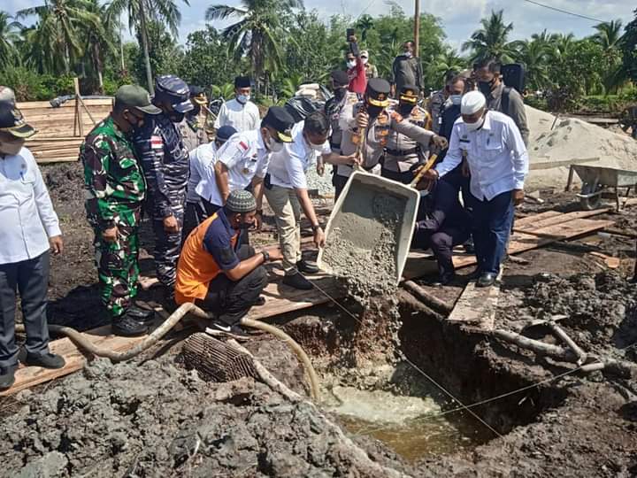 MERANTI (HALUANPOS.COM) – Bupati Kepulauan Meranti H. Muhammad Adil SH bersama Kapolda Riau Irjen Pol.Agung Setya Imam Effendi,SH,SIK,M,Si melakukan peletakan batu pertama pembangunan Masjid Jannatun Naim jalan H.Mustafa Desa Sungai Cina Kecamatan Rangsang Barat, (06/9/2021).