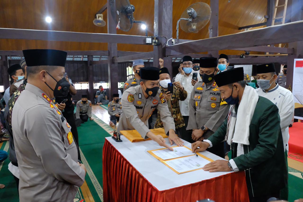 Berikutnya dilaksanakan Penandatanganan MoU antara Kapolres se-Jajaran Polda Riau dengan Pimpinan Cabang NU se-Provinsi Riau yang disaksikan oleh Kapolda Riau. MoU ini adalah kerjasama dalam rangka kegiatan pembinaan personel khususnya kegiatan dakwah kajian kitab kuning bagi personel yang muslim.
