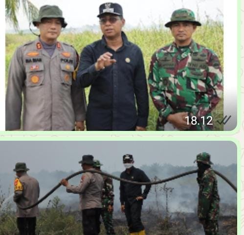 ROKAN HILIR (HALUANPOS.COM) Kapolres Rokan Hilir AKBP Isa Imam Syahroni, S.I.K., M.H., bersama Wakil Bupati Rokan Hilir Bapak Jhoni Charles, BBA., MBA., dan Dandim 0321/Rohil Letkol Inf Diki Apriadi, S.Hub.Int, turun langsung ke lokasi kebakaran hutan dan lahan (Karhutla) di wilayah Desa Bangko Permata, Kecamatan Bangko Pusako, Kabupaten Rokan Hilir, Kamis (17/7/2025) pagi.
