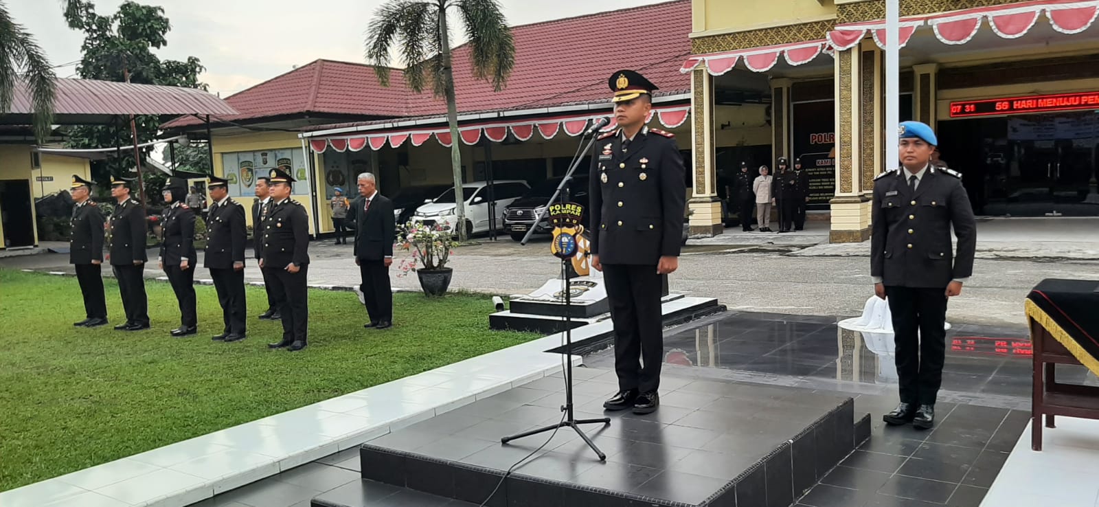 Peserta upacara terdiri dari Pejabat Utama Polres Kampar, Para Perwira, Bintara dan ASN Polres Kampar serta rangkaian Upacara diawali pembacaan Ikral Bela Negara oleh anggota Reskrim Bripda Andre Hermawan Pratama.