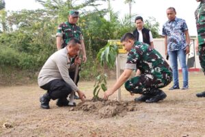 Memperkuat kebersamaan, rangkaian acara dilanjutkan dengan penanaman pohon di depan Lapangan Tembak Polres Rokan Hilir sebagai simbol kepedulian bersama TNI–Polri terhadap lingkungan sekaligus memperkokoh komitmen menjaga keharmonisan dan kekompakan dalam pelaksanaan tugas.
