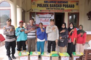 Bantuan tersebut dipusatkan di dikantor Mapolsek Bangko Pusako, dijalan H. Annas Maamun Kelurahan Bangko Kanan Kecamatan Bangko Pusako.