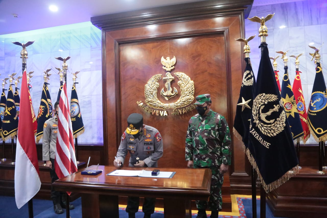 “Sinergitas kerjasama di operasi utamanya amarinir dan Brimob, Lantamal dengan Polair,” kata Sigit dalam pertemuannya bersama KSAL.