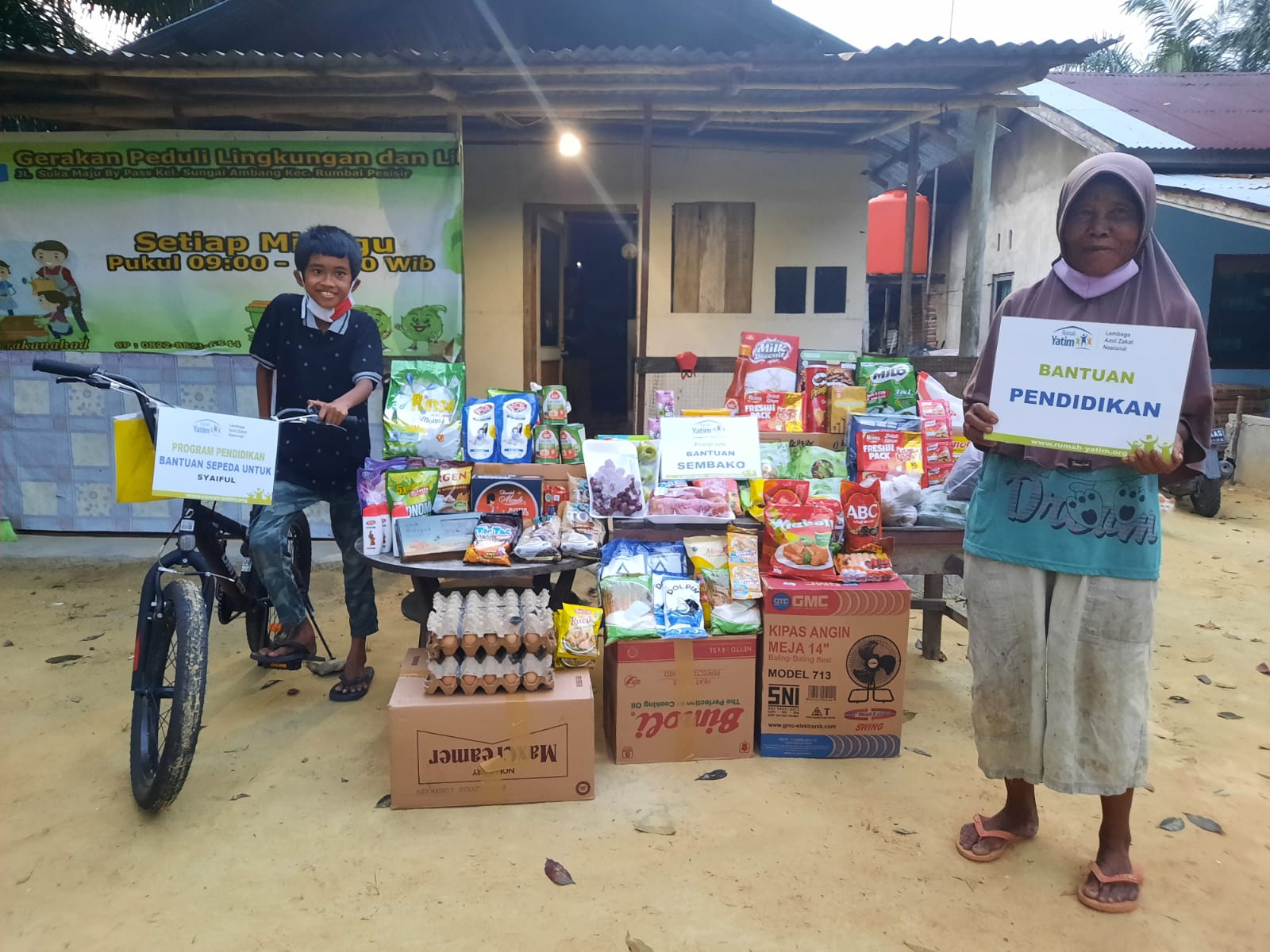 PEKANBARU (HALUANPOS.COM)-Rumah Yatim Cabang Riau kembali menyalurkan bantuan pendidikan berupa program beasiswa dhuafa serta satu unit sepeda dan vitamin,buah-buahan serta bahan pokok untuk Syaiful Amri (12) pada hari Kamis (12/8) siang ini.