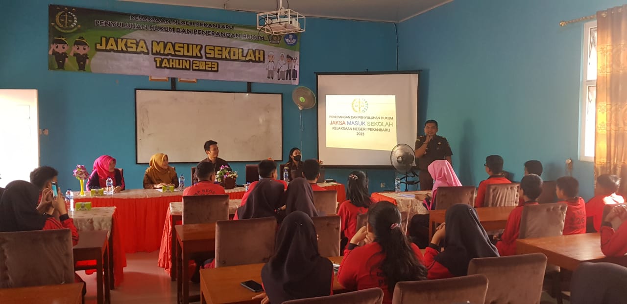 Kegiatan Penyuluhan Hukum program Jaksa Masuk Sekolah dipaparkan oleh Jumeiko Andra, SH.MH, selaku Kasubsi A Intelijen Kejari Pekanbaru dengan beberapa materi diantaranya ;