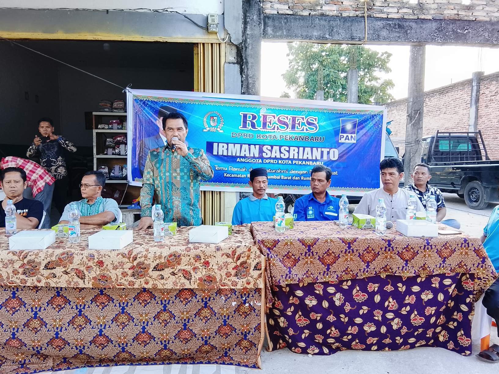 Mengenai PJU yang diusulkan, nantinya kita akan bahas bersama Dishub. Dan mengenai air bersih, kita meminta ibu-ibu menyediakan lahan untuk pembuatan sumur bor. Insyallah kita siap membantu. Mengenai jalan Palas yang rusak, nantinya kita akan diskusikan dengan pihak Pemko Pekanbaru apalagi diarea Jalan Palas ini banyak proyek jalan Tol. Mudah-mudahan dengan adanya proyek jalan Tol pihak perusahaan bisa memperhatikan jalan-jalan yang rusak di lingkungan proyek jalan Tol,” ungkap Irman