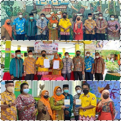 Dimana penandatanganan MoU tentang pembinaan kebudayaan untuk mutu pendidikan di SMAN 7 Pekanbaru disaksikan oleh sekretaris Disbud Riau, Fuadi, M Ridwan Kabid Cagar budaya, Kasi Sabri, Edy Yulisman, A Syamsir SH serta beberapa para guru.