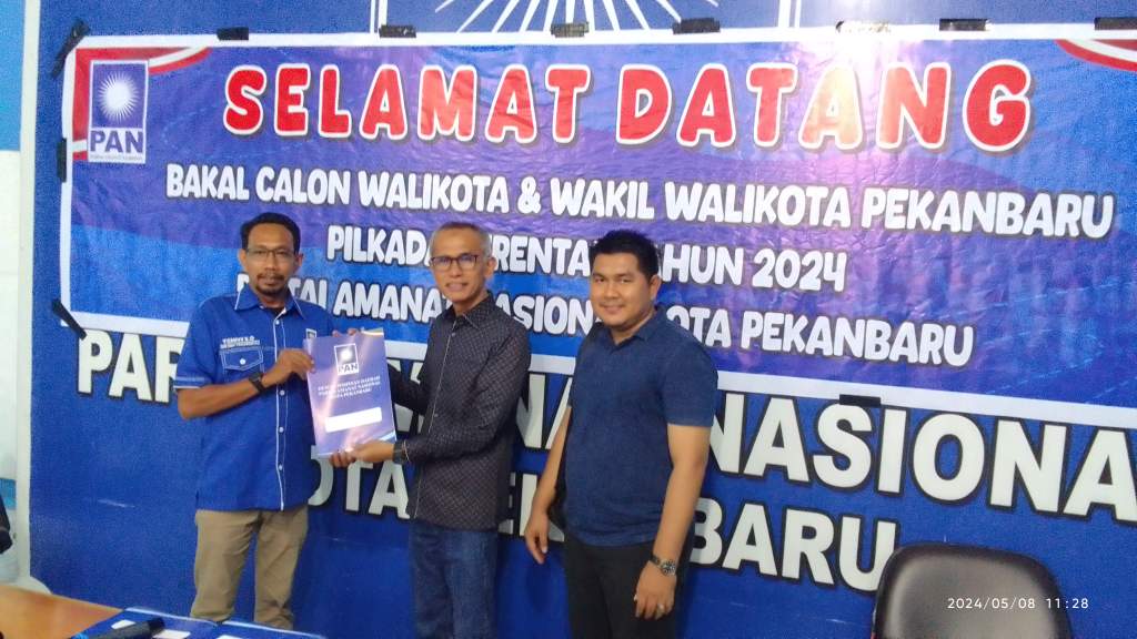 Pekanbaru(Haluanpos.com)-Ketua DPD PAN Kota Pekanbaru, Ir Nofrizal, MM usai menerima formulir pendaftaran Bacalon Walikota Pekanbaru Endang Sukarelawan dan Lahmuddin Rambe sebagai Wakil Walikota Pekanbaru di sekretariat DPD PAN Kota Pekanbaru, Rabu(8/5/24) mengambil formulir pendaftaran Bacalon Walikota Pekanbaru yang diserahkan tim penjaringan Bacalon DPD PAN Kota Pekanbaru.