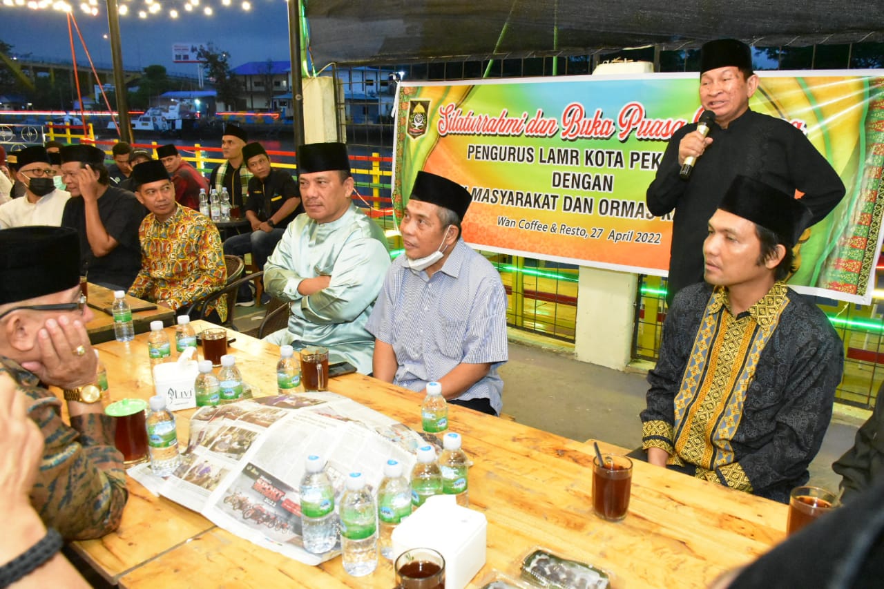 PEKANBARU (Haluanpos.com)-Silahturahmi dan Buka Bersama Pengurus LAMR Kota Pekanbarui dengan Tokoh Masyarakat dan Ormas Kemelayuan di Wan Coffe dan Resto, Rabu (27/4/22) dihadiri langsung oleh Ketua MKA LAMR Datuk Seri R H Marjohan Yusuf dan Ketua DPH LAMR Datuk Seri Taufik Ikram Jamil.