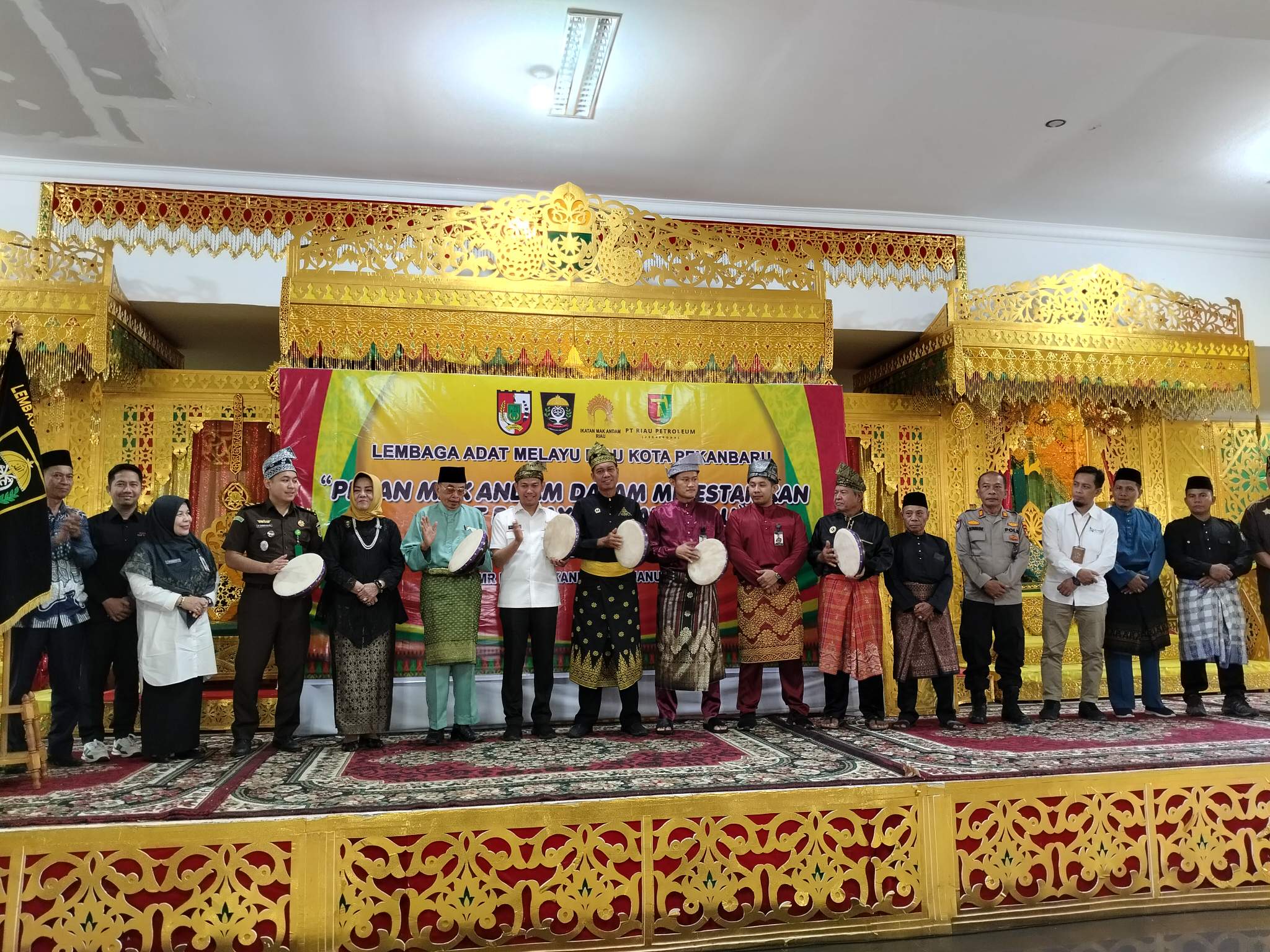 Pekanbaru(Haluanpos com)-Dengan ditandai pemukulan kompang secara bersama, Asisten I Pemerintah kota Pekanbaru, Masykur Tarmizi yang didampingi ketua Umum DPH LAMR Kota Pekanbaru, Datuk Seri Muspidauan, Tokoh Masyarakat Riau, OK Nizamil, pihak perwakilan PT Riau Petroleum, Ketua Ikatan Mak Adam Provinsi Riau, Bunda Syam Abubakar secara resmi membuka kegiatan pelatihan Mak Adam Perkawinan Adat Melayu Riau LAMR Kota Pekanbaru dibalai adat LAMR kota Pekanbaru, Rabu(22/1/25)