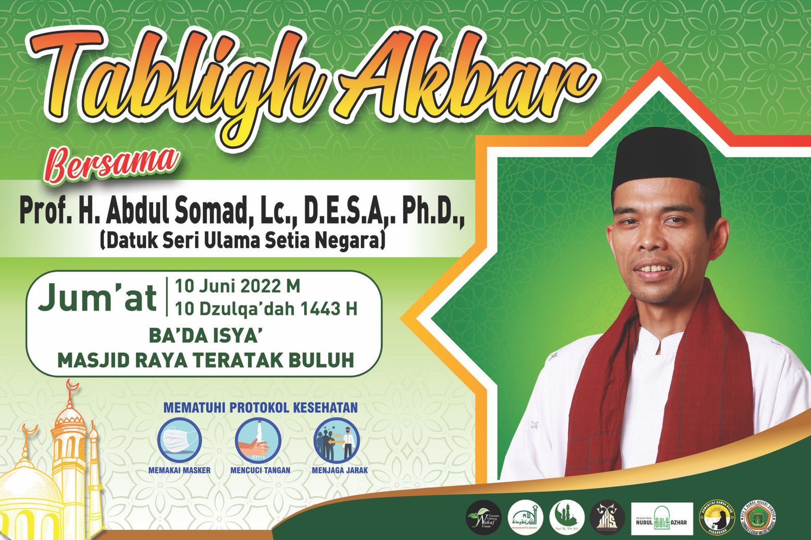 KAMPAR (HALUANPOS.COM)-Pengurus Masjid Raya Teratak Buluh Gelar Tabligh Akbar Bersama Datuk Seri Ulama Setia Negara. Jum’at, 10 Juni 2022 ba’da Isya Desa Teratak Buluh, Kab. Kampar melakukan gelar Tabligh Akbar bersama Prof. H. Abdul Somad, Lc., D.E.S.A., Ph.D., selaku Datuk Seri Ulama Setia Negara di Masjid Raya Teratak Buluh.