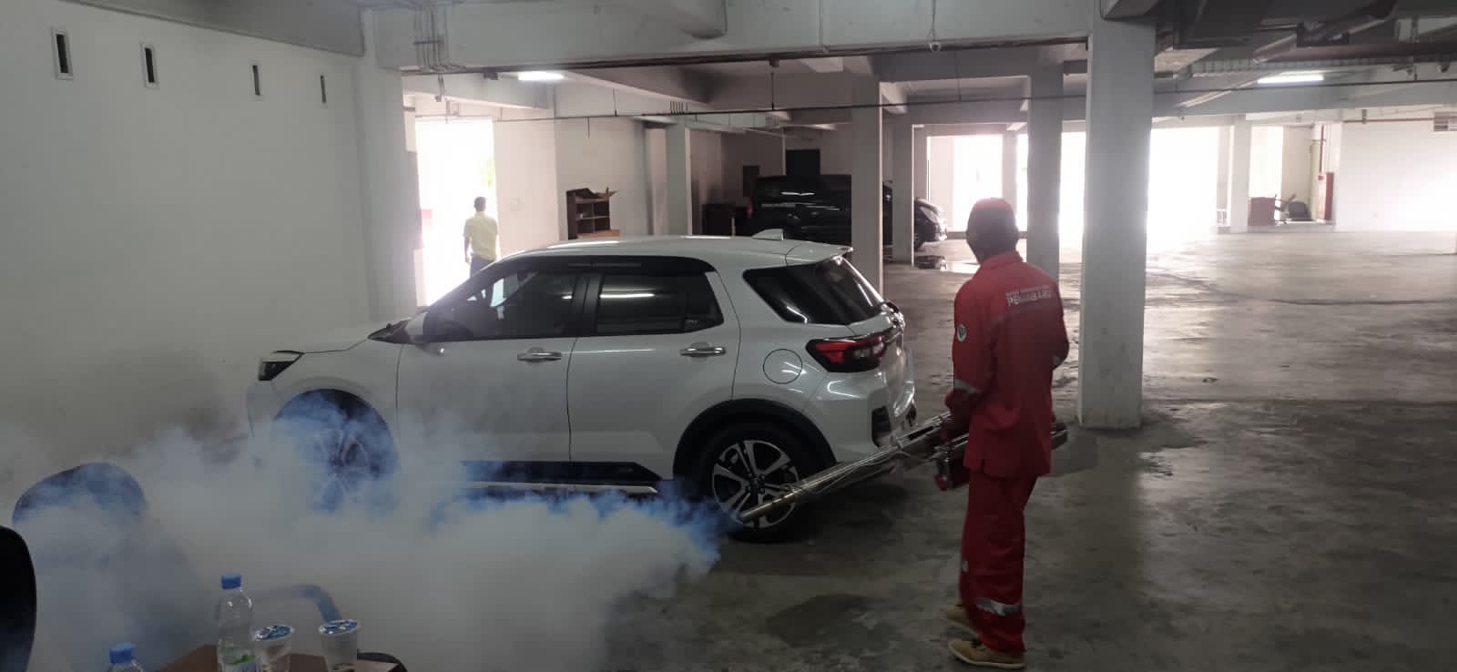 Dimana tim Dinkes melakukan Fogging mulai dari menyemprot parit-parit depan gedung, basement, lobi, halaman, mushola, ruang tunggu, hingga berlanjut ke ruang-ruang kerja di Sekretariat DPRD Pekanbaru.