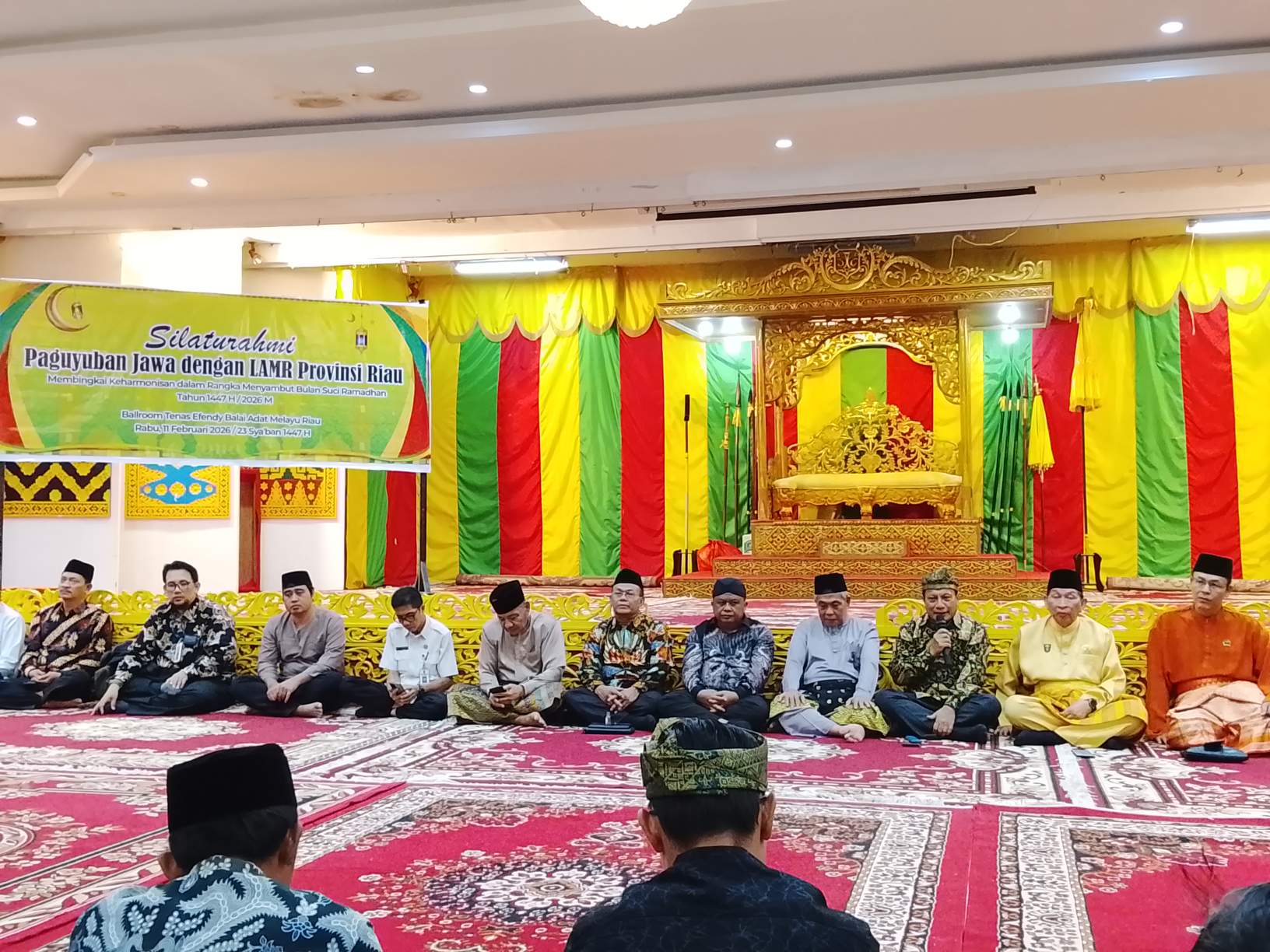 Dalam rangka menyambut Bulan Suci Ramadhan Tahun 1447 H/2026, Paguyuban Jawa Riau mengelar acara silahturahmi dengan ketua Umum MKA LAMR, Datuk Seri H Raja Marjohan Yusuf, ketua umum DPH LAMR, Datuk Seri H Taufik Ikram Jamil serta jajaran pengurus di Ballroom Tenas Effendy Balai Adat Melayu Riau, Rabu,11 Februari 2026.