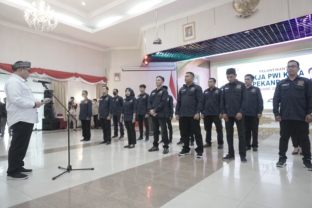 PEKANBARU (HALUANPOS.COM)- Penjabat (Pj) Walikota Pekanbaru menghadiri langsung pelantikan Pokja Persatuan Wartawan Indonesia (PWI) Kota Pekanbaru periode 2021-2025, di Gedung Daerah Balai Serindit Riau, Jumat (29/7/2022).