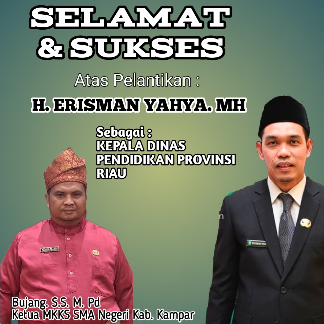 ” Ya tentu kita pertama mengucapkan selamat dan tahniah kepada Bapak H. ERISMAN YAHYA yang dilantik sebagai Kepala Dinas Pendidikan Provinsi Riau. ” Kata Bujang.