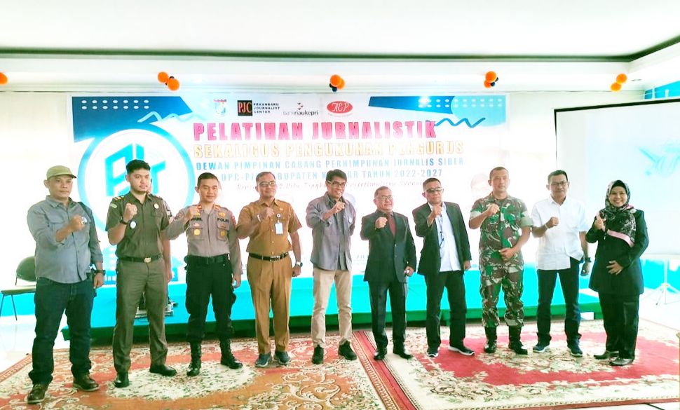 BANGKINANG (HALUANPOS.COM) – Pelatihan jurnalistik sekaligus pengukuhan pengurus Dewan Pimpinan Cabang Perhimpunan Jurnalis Siber (DPC PJS) tahun 2022-2027 di gelar di Stanum Park Bangkinang Kabupaten Kampar pada Senin (27/6).