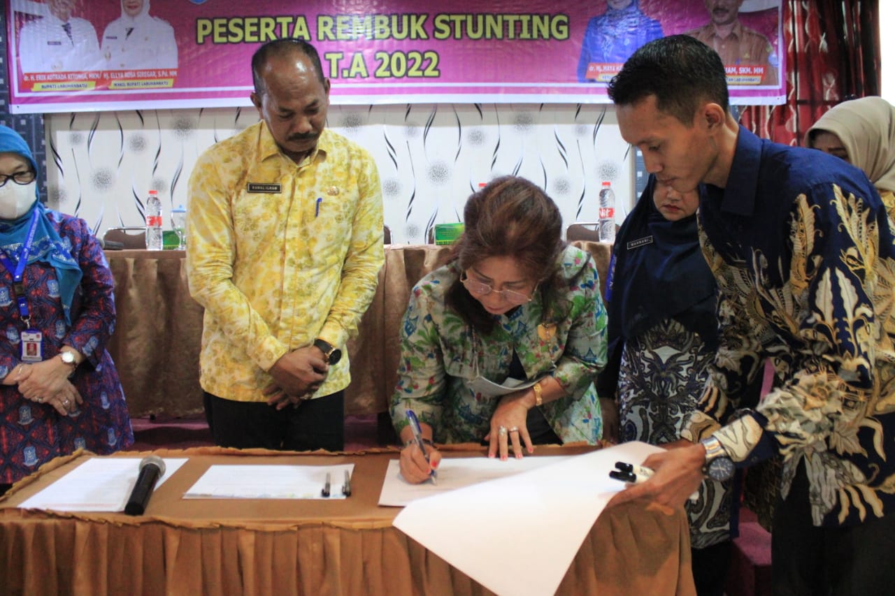LABUHANBATU (HALUANPOS.COM)-Pemerintah Kabupaten Labuhanbatu melibatkan stacholder terkait, yakni Dinas Kesehatan, Dinas P2KB, DPRD, Diskominfo, Dinas Hanpang, DP3A, BAPPEDA, Komisi empat DPRD Kabupaten Labuhanbatu, Kemenag, Camat, Kapus, PKK, Pokja empat, Kades dan Lurah sepakat dan komitmen menurunkan volume angka Stunting dilingkungan Pemerintah Kabupaten Labuhanbatu.