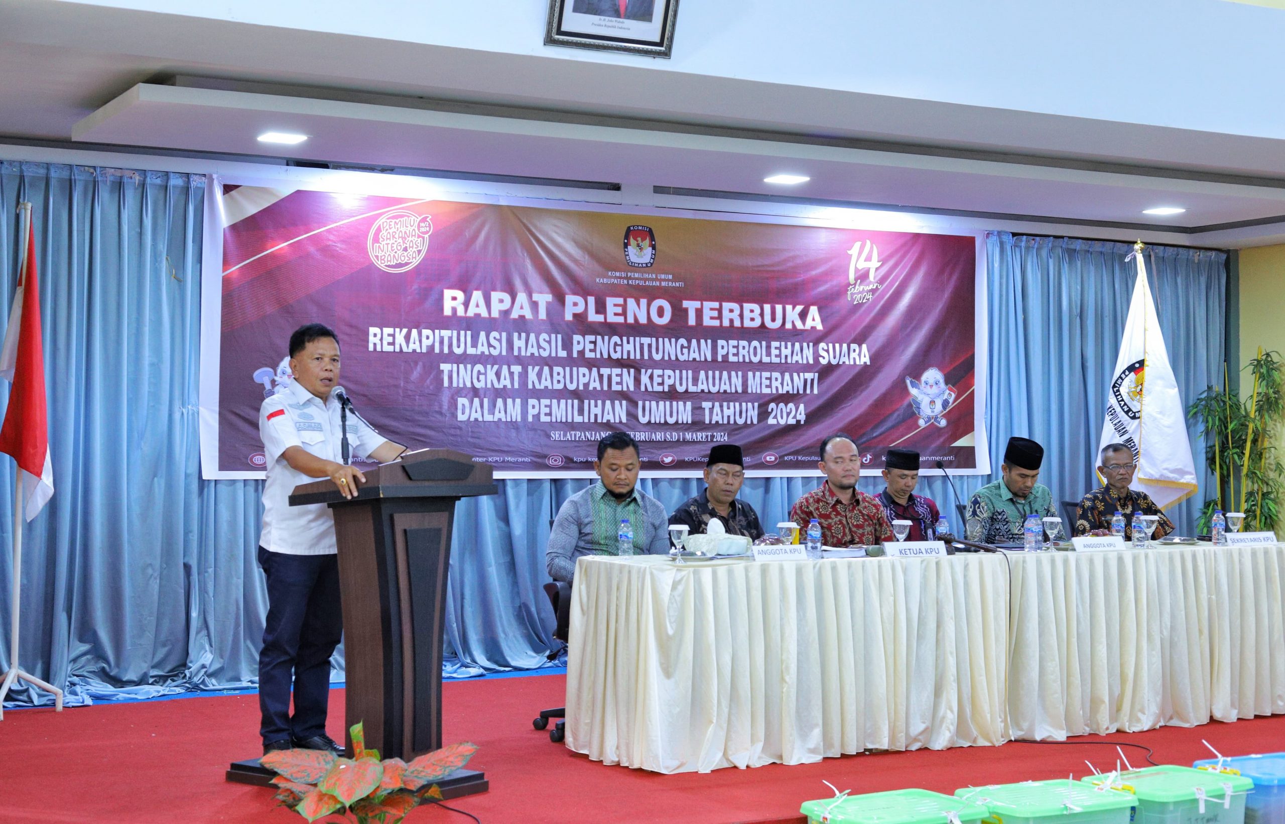 Ketua KPU Kepulauan meranti Abu Hamid dalam sambutannya menyampaikan, proses rekapitulasi suara di tingkat kecamatan telah selesai dilaksanakan tanggal 26 februari 2024.