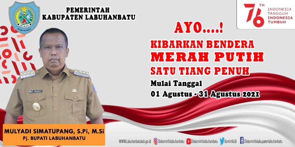 LABUHANBATU (HALUANPOS.COM)-Untuk menyemarakkan Hari Ulang Tahun (HUT) Kemerdekaan RI ke 76, Pemerintah Kabupaten Labuhanbatu menghimbau kepada seluruh masyarakat Labuhanbatu Agar Mengibarkan bendera Merah Putih satu tiang penuh mulai tanggal 1 s.d 31 Agustus 2021.